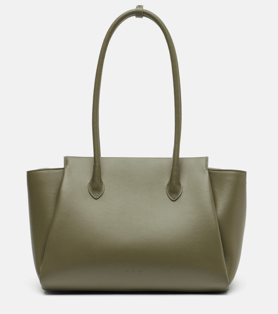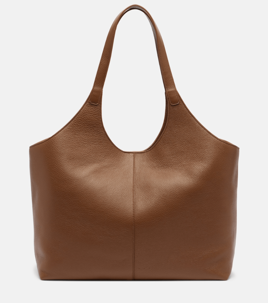 A good tote feels balanced against the body. Oversized but controlled – not floppy, not miniature.